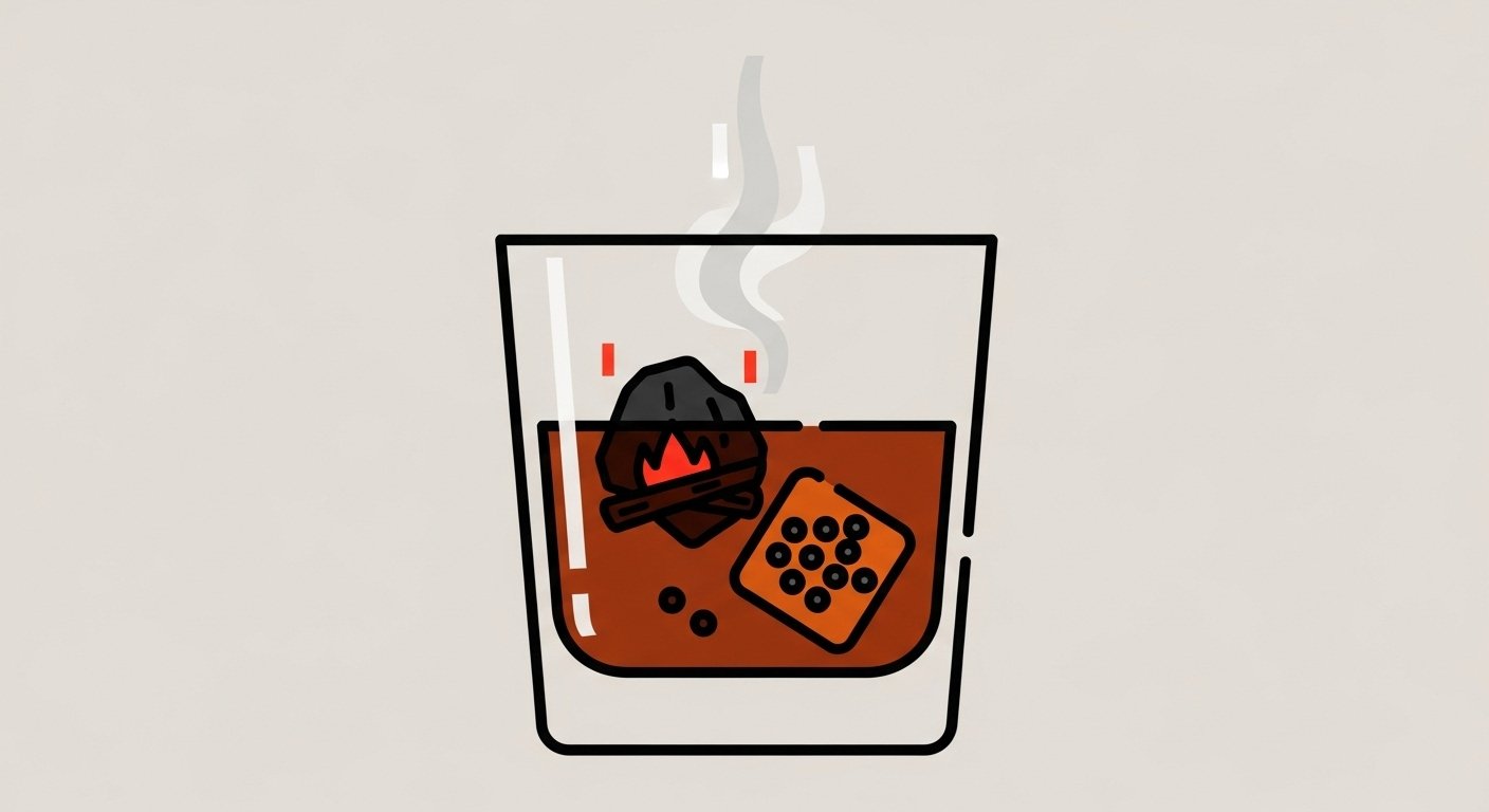 - Mais Especiarias: A madeira queimada traz notas de cravo, pimenta preta e carvalho tostado.