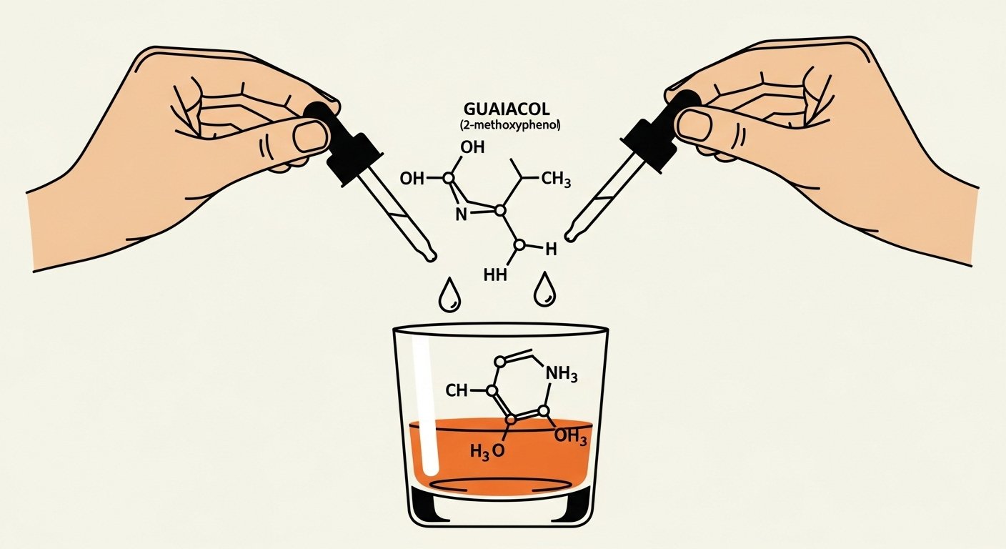 Pesquisas científicas indicam que adicionar uma pequena quantidade de água (cerca de 1/5 do volume do whisky) faz com que a molécula de guaiacol, responsável pelo aroma e sabor do defumado e picante, suba para a superfície.