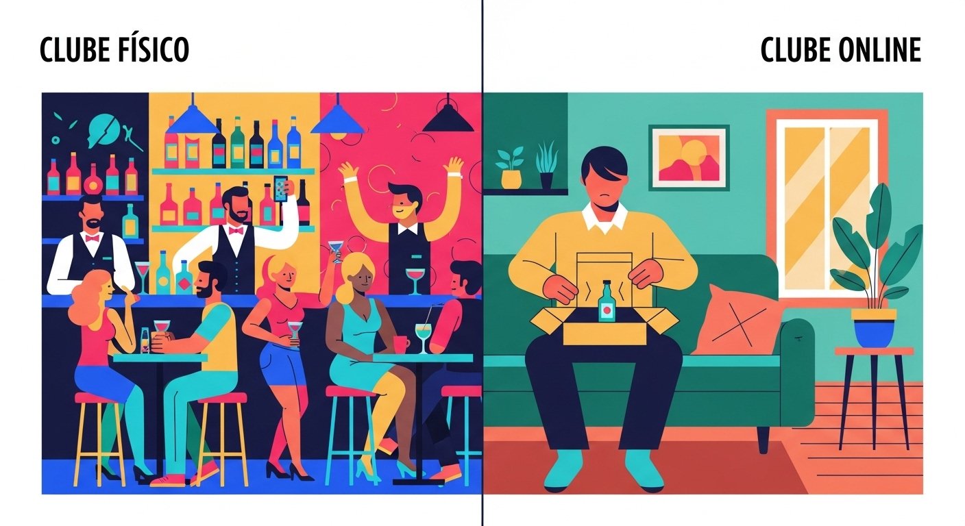 Mas atenção: hoje em dia existem dois tipos de clubes. O físico (do bar) e o online (assinatura). Vou te explicar como ambos funcionam e qual vale a pena para você.