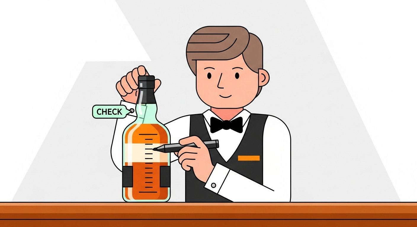 Os bares sérios marcam o nível do líquido com uma fita/caneta na sua frente antes de guardar. Confira sempre ao receber a garrafa de volta.