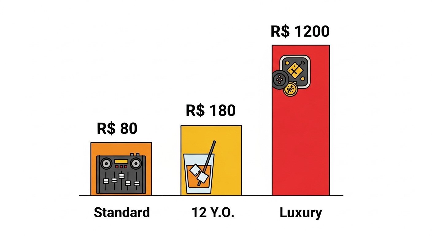 A média saudável é entre R$ 140 e R$ 200 para marcas consagradas como Chivas e Black Label.