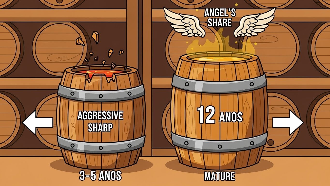 - Interação: O oxigênio entra lentamente no barril e cria notas frutadas complexas.