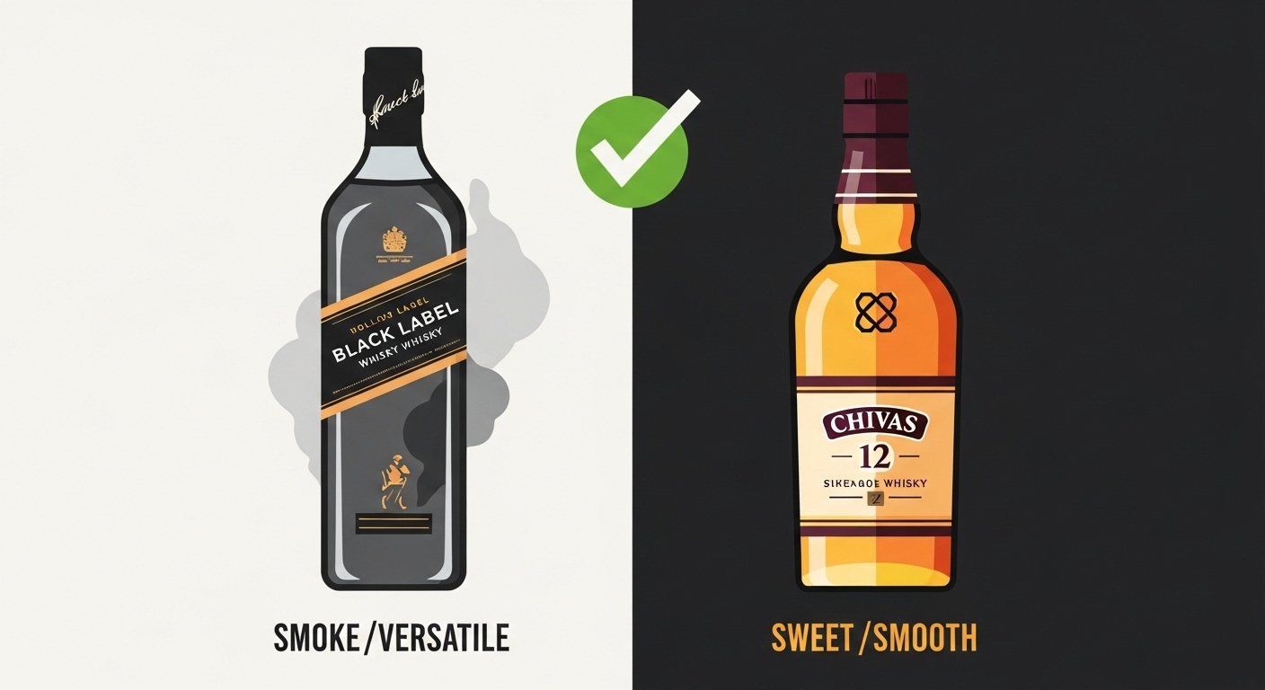 - Vs. Chivas Regal 12: O Chivas é mais suave, floral e tem gosto de maçã/mel. Não tem fumaça. Se você odeia defumado, o Chivas é melhor. Se você gosta de complexidade e intensidade, o Black ganha.